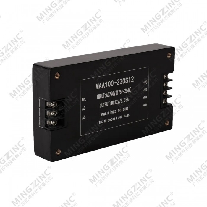 MAA100-220S12 | 176-264VAC | 220VAC | 12VDC | 8.3A | 100W | 84% |