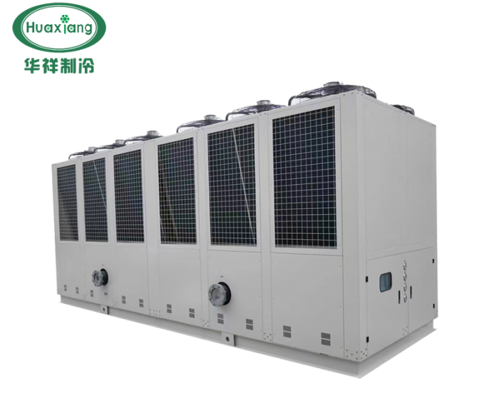 风冷螺杆式冷水机主要以空气作为冷却源,特别是在资源匮乏的地区,如中国的西北或东北,国外的不地因缺水的国家或地区特意设计的大型机组。因其关键部件-压缩机采用螺杆式故名风冷螺杆式冷水机,机组由蒸发器出来的状态为气体的冷媒;经压缩机绝热压缩以后,变成高温高压状态。被压缩后的气体冷媒,在冷凝器中,等压冷却冷凝,经冷凝后变化成液态冷媒,再经节流阀膨胀到低压,变成气液混合物。其中低温低压下的液态冷媒,在蒸发器中吸收被冷物质的热量,重新变成气态冷媒。气态冷媒经管道重新进入压缩机,开始新的循环。这就是冷冻循环的四个过程。也是螺杆式冷水机的主要工作原理。