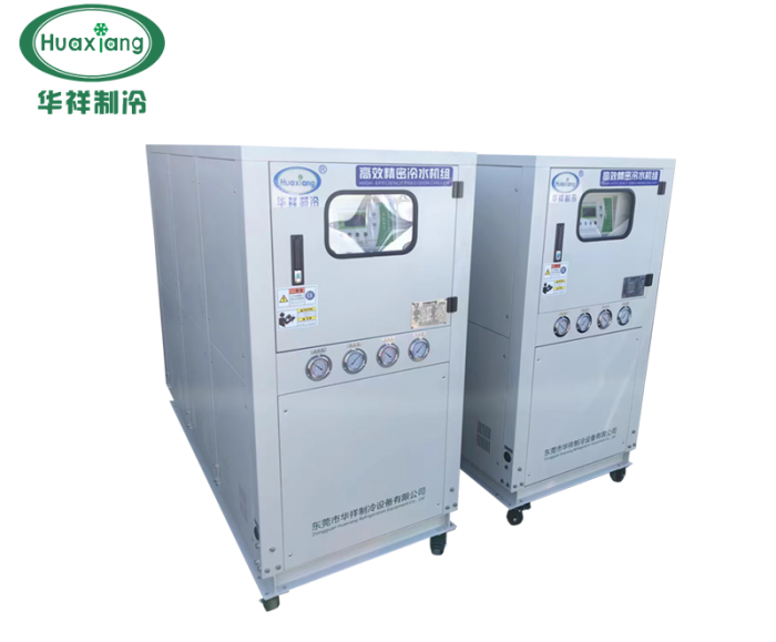 水冷式冷水机体积小,制冷量大,采用世界名牌进口压缩机,低温性能卓越,可靠耐用,产品根据工业应用特点设计,内置低温循环水泵及不锈钢冷冻水箱,使用极为方便,所有与水接触的材料均采用不锈钢(或可定制各种材料),有效防止生锈,腐蚀,微电脑LED数量控制器,具备温度显示,设定温度,自动调节冻水温度及压缩机延时保护功能,选用名牌接触器,继电器等电器元件,配备完善的指示灯,开关,操作一目了然,内置电子水位指示及报警装置,低水位自动报警,操作人员通过控制面板就能掌握冷冻水箱的水位情况,及时补水,独有的模块式设计,每台压缩机的系统安全独立,即使一个系统出现问题,亦不会影响其他系统的正常工作。