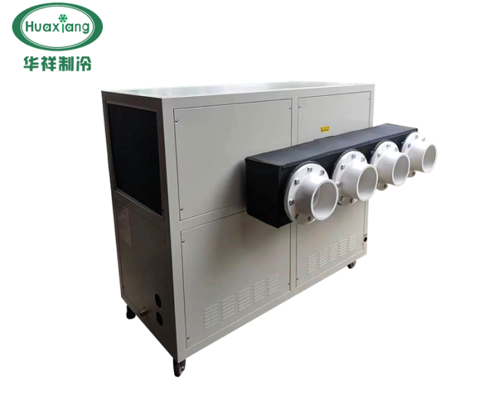 工业冷风机专业针对医药,吸塑,化工,电子,食品,注塑等一款低温冷风机组,可直接从机组来提供冷风,具有外表美观,体积小,性能优异,质量可靠,价格经济等优势,风冷式水冷式工业冷风机具有上吹风和下吹风两种机型(具体出风口位置可根据用户要求以及用户使用的具体要求产品而定),处理风量从100m3/h/h~3000m3/h,风压可达200-1200pa甚至更高,出风温度-25--+8℃,风速可达32m/s,基本上可以满足各类工业品的冷风机型的要求。